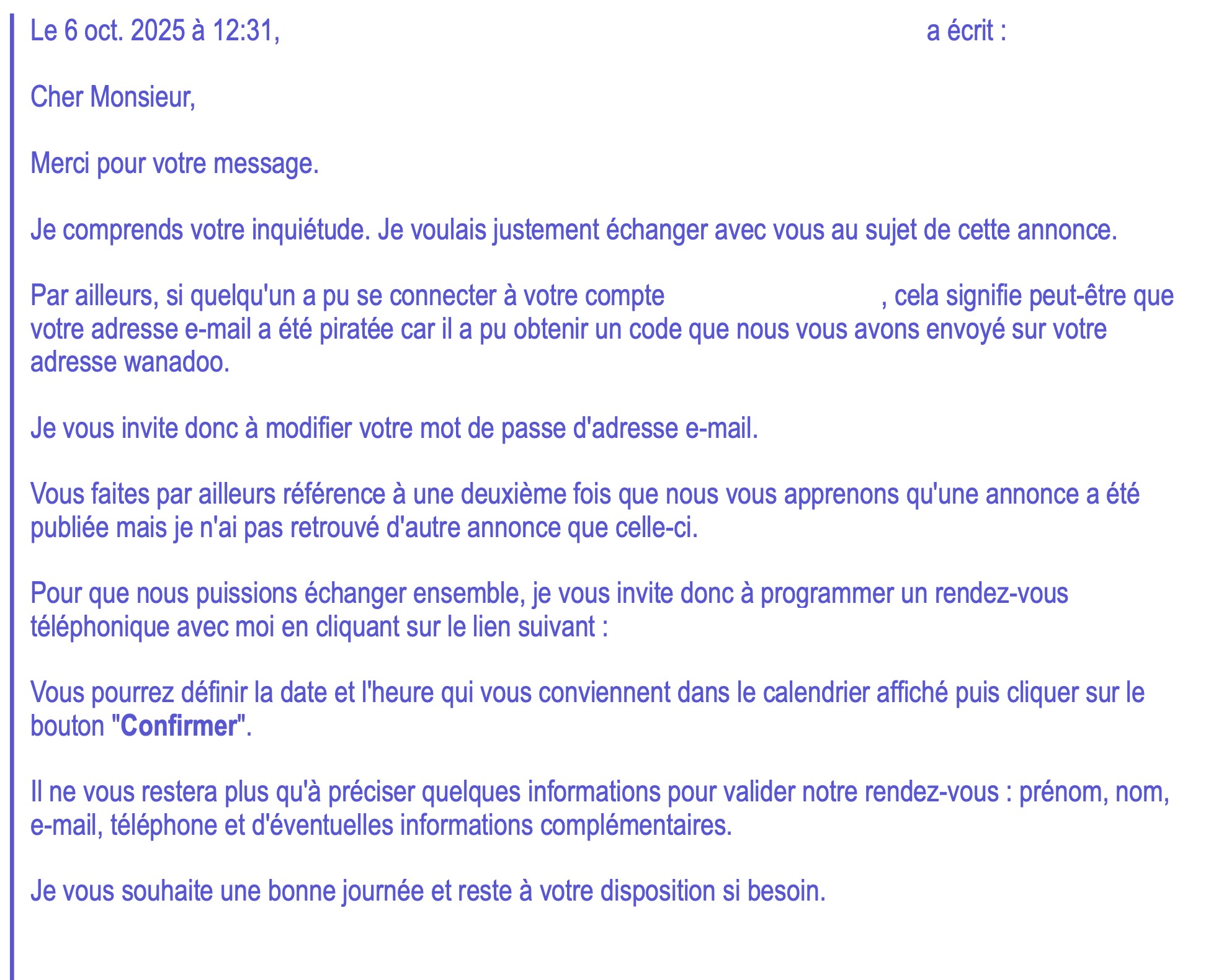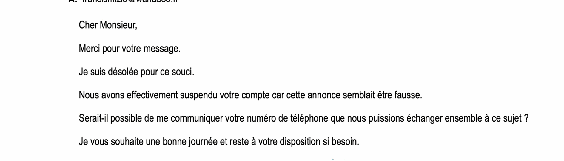 – C’est quoi cette fausse annonce initiale qui par deux fois a utilisé mon compte ?