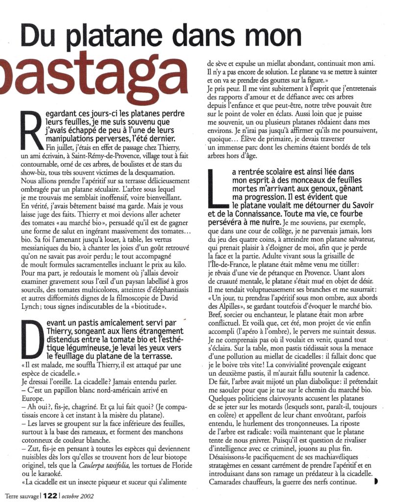 Relire une vieille chronique (à propos de platane) et se dire… qu’on n’a pas toujours été très bon (chronique parue en 10/02 dans le magazine Terre Sauvage n°177)