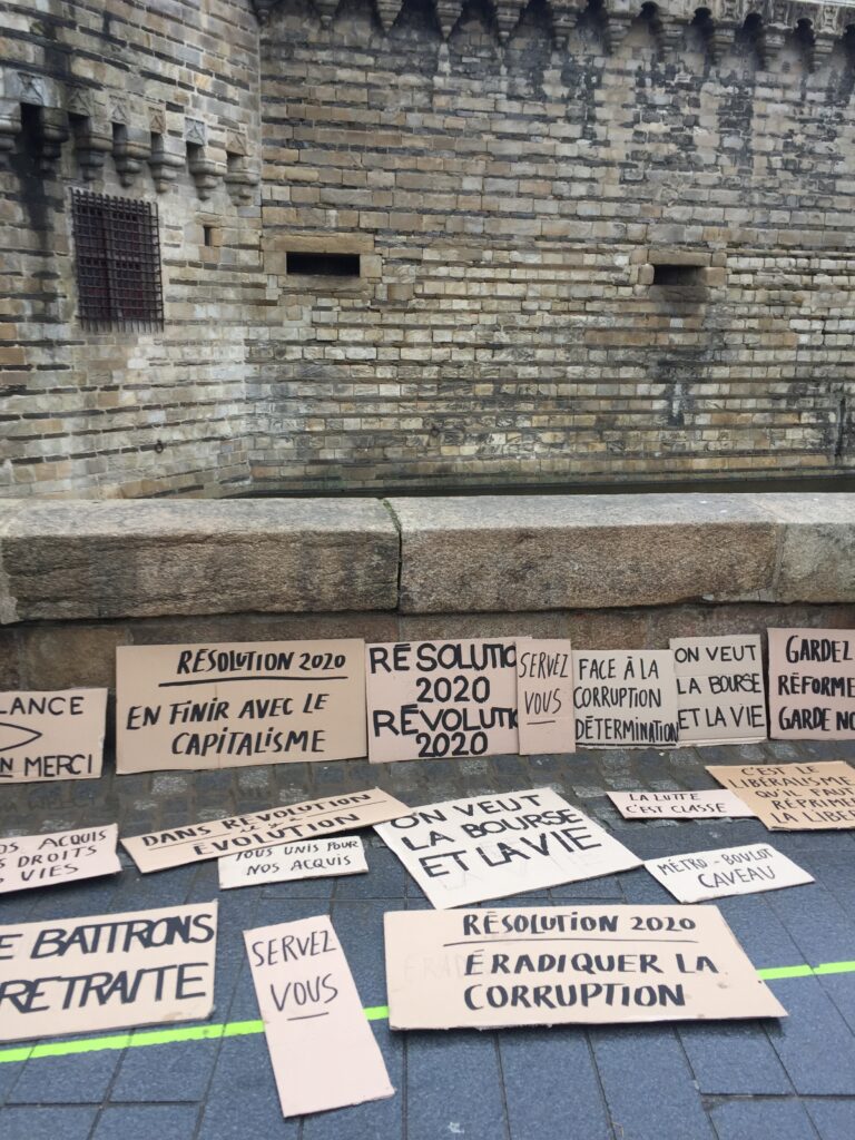 - [Où étais-je le… ?] 9 janvier 2020, à Nantes, devant un superbe parapluie spécial manifs (et un stand de slogans)