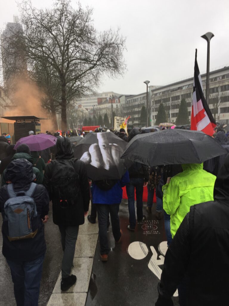 [Où étais-je le… ?] 9 janvier 2020, à Nantes, devant un superbe parapluie spécial manifs (et un stand de slogans)
