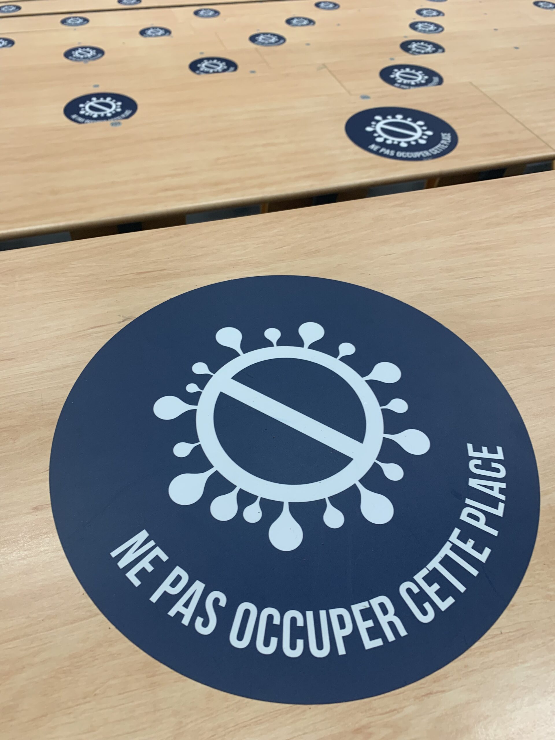 En y réfléchissant, c’était un peu flippant toute cette signalétique, non ? Mais on appréciera l’idée du graphiste qui avait fait du covid et des gouttelettes un panneau d’interdiction. Pas mal vu.