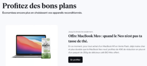 Si j’achète un MacBook Neo (ou Meo : on n’y comprend plus rien) chez Back Market, si je clique, je vois qu’il il vaut 471€ et qu’on m’offre alors un paquet de café Méo, c’est-à-dire ça :