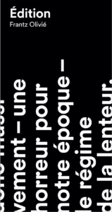 Ça, c’est juste le début de Édition, ce petit livre formidable de Frantz Olivié — un vieux professionnel de la profession — éditeur indépendant qui vous explique simplement, calmement ce qui se joue, ce qu’il se passe, et là où on en est parce que menés par les chiffres, par les contraintes économiques, parce que la distribution biaisée, parce que les représentants débordés (sinon cyniques), parce que les libraires exsangues, parce que la médiatisation faussée, parce que le turn over absurde dans les rayons, parce que la planche à billet créée par les distributeurs qui touchent à l’aller et au retour, parce que plein de choses (dont la chute drastique de la lecture) ; toutes avanies qui ont engendré les monstres de l’uniformisation, de l’absence de curiosité et de création, du panurgisme éditorial ; bref, qui ont créé une industrie du livre, un écosystème de l’édition, un monde du livre… totalement déconnants.